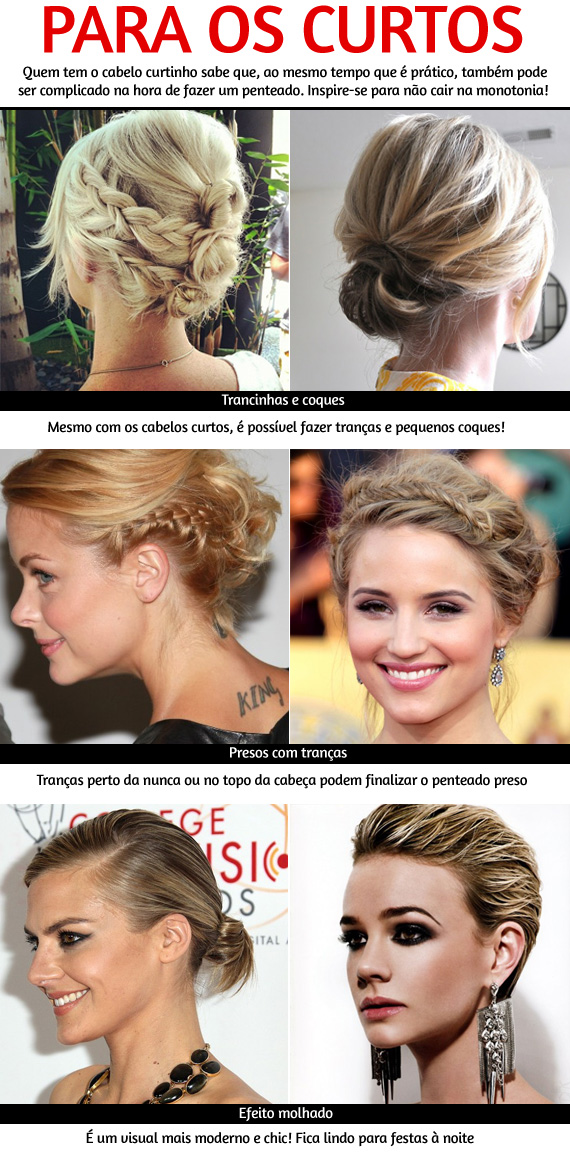 Ter os fios mais curtinhos pode ser prático (lavou, secou, tá pronto!), mas na hora de fazer uma coisinha a mais fica um pouquinho complicado e requer um pouco mais de inspiração, não é? Foi pensando nisso que selecionei algumas imagens para dar um help, especialmente agora, com tantas festas de final de ano que pedem uma coisinha a mais!