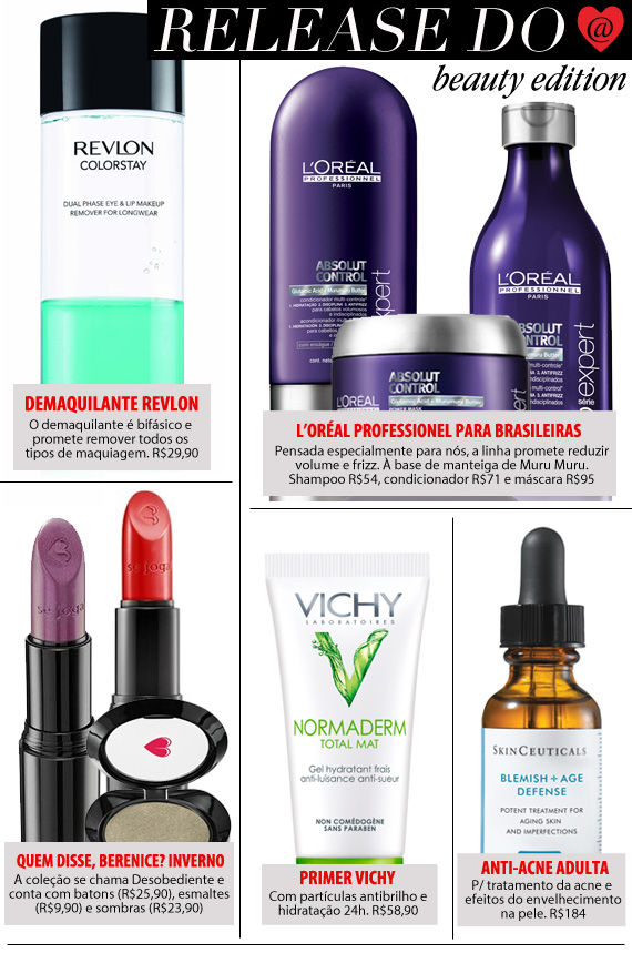 Release do amor de beleza também vale, né? Afinal, as marcas estão lançando novidades sem parar e a gente não podia deixar de selecionar umas coisas bem legais para mostrar! O que vocês acham?