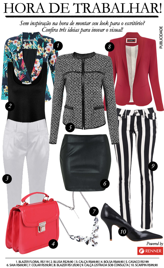 Pensando nisso, separamos junto com as lojas Renner três ideias de looks para o trabalho para sair um pouco do comum, mas sem pecar pelo excesso.
