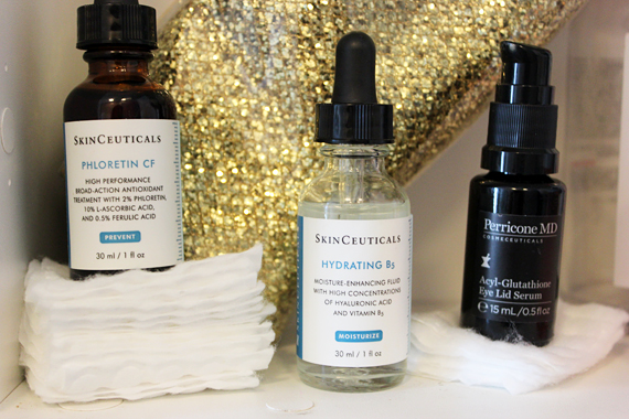Passado o Bio-Oil, o rosto já está pronto pra receber os creminhos/serums! Uso esse Perricone MD Acyl-Glutathione Eye Lid Serum ao redor dos olhos, que já previne rugas e ajuda nas olheiras, e em seguida o Hydrating B5 da famosa SkinCeuticals, um sérum muuuito leve que hidrata pra caramba e deixa a pele bem lisinha, tô apaixonada por ele! Pra finalizar, o SkinCeuticals Phloretin CF que também é sérum, só que antioxidante com 10% de vitamina C pura, que deixa a pele mais luminosa, diminui as linhas finas e protege contra radicais livres e o fotoenvelhecimento.