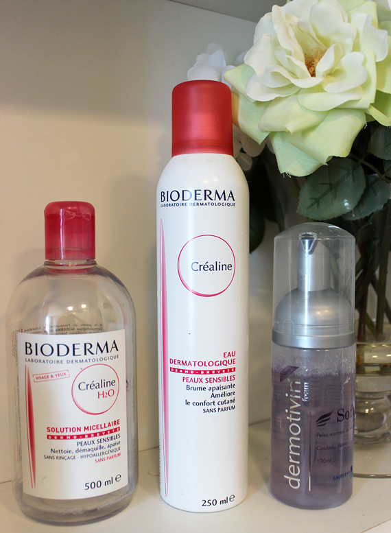 ANTES DE DORMIR: Tiro toooda a maquiagem com Bioderma (não tirar faz muita diferença na pele no dia seguinte né? Não consigo mais dormir com!), lavo o rosto com esse sabonete espuminha Dermotivin e dou uma “sprayada” leve de água thermal Bioderma.