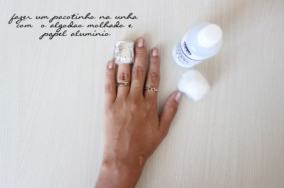 Aprendi esse truque e resolvi fotografar meus dedinhos gorditos para ensinar para vocês. O melhor de tudo é que é bem simples: você só vai precisar de um quadradinho de papel alumínio, algodão e removedor de esmalte. Molhe o algodão no removedor, coloque sobre a unha e “encape” com o papel alumínio, deixando agir por alguns minutos. Quando você retirar o “pacotinho”, vai ver que o esmalte saiu! So easy!