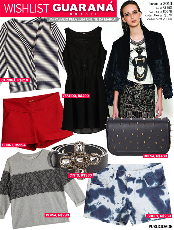 Atemporal, mas ao mesmo tempo ligada nas tendências. É assim que eu definiria a Guaraná Brasil, marca brasileira que está no mercado desde 1985. Quem não lembra das camisetas, cintos com pedraria e jeans da GB?! Era uma febre total quando eu era teenager. #sonhodeconsumo A coleção de inverno 2013 vem recheada de cardigãs, tricots e peças de couro, tudo bem trendy, mas sem perder o toque clássico que nos permite usar a roupa bastante e combinada de diversas maneiras.